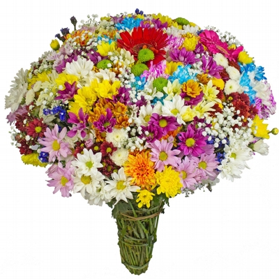 Deslumbrante Buque Dueto de Flores do Campo para deixar o dia da pessoa que você adora mais alegre e perfumado ! Embalado em papel celofane e um delicado laço de ráfia. Composto por 2 maços de Flores do Campo, junco, aster e folhagens.