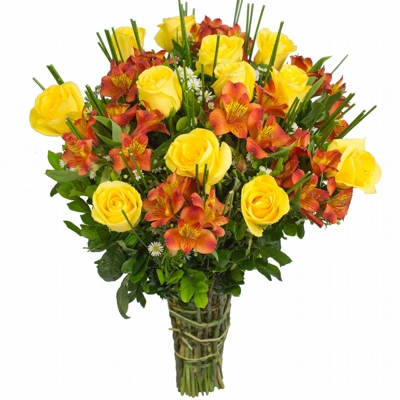 Rosas amarelas com Astromelia
